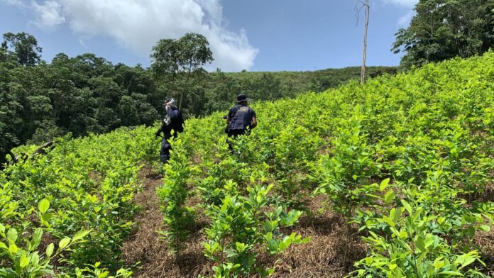 Tegucigalpa.- El Ministerio Público y la Policía Militar del Orden Público (PMOP) realizaron en la cuenca del río Cangrejal, Atlántida, la erradicación e incineración de una plantación de arbustos de hoja de coca.