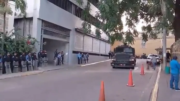 Tegucigalpa.- Desde tempranas horas de este jueves, las instalaciones del Consejo Nacional Electoral (CNE) en el barrio San Felipe amanecieron bajo un estricto resguardo de elementos antimotines, Fuerzas Armadas y miembros de la Policía Nacional, en vísperas de la recepción de ofertas para la implementación del sistema de Transmisión de Resultados Electorales Preliminares (TREP).