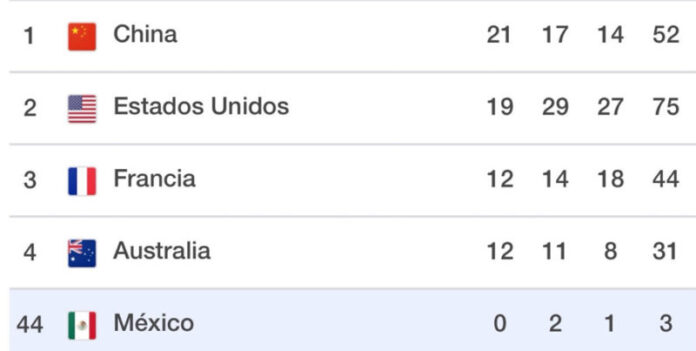 Tegucigalpa.- El equipo de China sumó este lunes dos oros más para situarse de nuevo al frente del medallero de los Juegos Olímpicos de París 2024, en el que suma 21 primeros puestos, 18 segundos y 14 terceros para un total 53 metales.