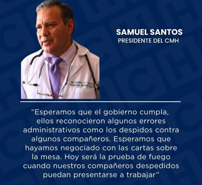 El presidente del Colegio Médico de Honduras (CMH), Samuel Santos, calificó este jueves como un día clave, una verdadera “prueba de fuego”, para determinar si se respetarán los acuerdos alcanzados entre el gremio y la Secretaría de Salud (Sesal), luego de varias semanas de asambleas informativas marcadas por la falta de consensos.