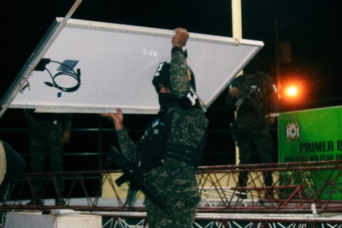 Tegucigalpa.- Las autoridades de la Policía Militar, han desmantelado este domingo una antena ilícita de comunicaciones instalada por estructuras criminales con la finalidad de bajar señal de internet y redireccionarlo al Centro Penal de Tamara.