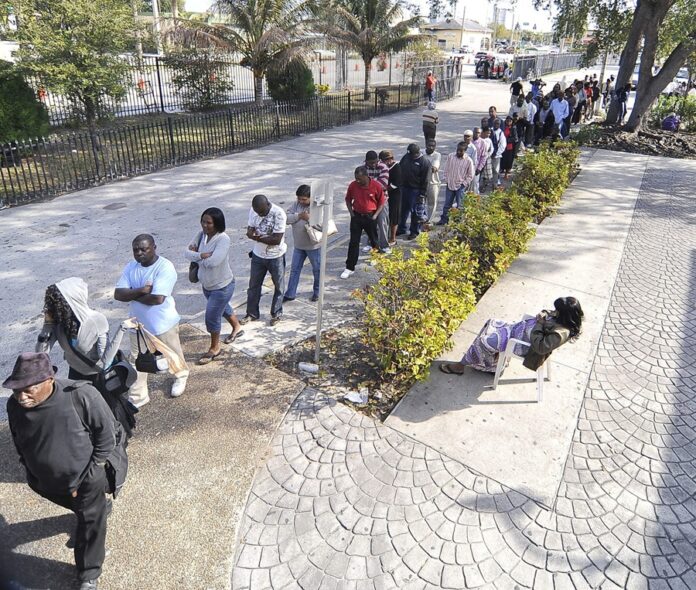 MIA06. MIAMI (FL, EE.UU.), 19/01/2010.- Cientos de inmigrantes haitianos hacen cola hoy, martes 19 de enero de 2010, a las puertas de la iglesia católica de Notre Dame D´Haití, en el barrio del Pequeño Haití de Miami (FL, EEUU), para recibir información sobre cómo solicitar el trámite del Estatus de Protección Temporal (TPS) que les permite obtener un permiso de trabajo y permanecer en Estados Unidos de forma legal. Mientras tanto, numerosos heridos por el terremoto que sacudió hace una semana a Haití continúan llegando al sur de Florida, mientras los principales hospitales del estado se preparan para una afluencia ininterrumpida de pacientes en los próximos días. EFE/Gastón De Cárdenas