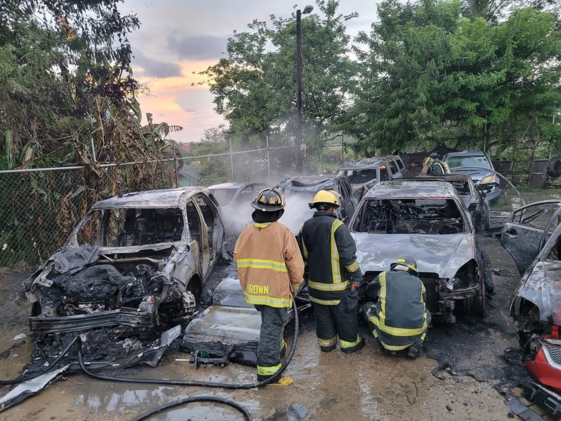 Ocho vehículos de importación fueron consumidos por un incendio en un predio en Puerto Cortés, en la zona norte del país. Hasta el momento, no se reportan personas heridas, únicamente pérdidas materiales.