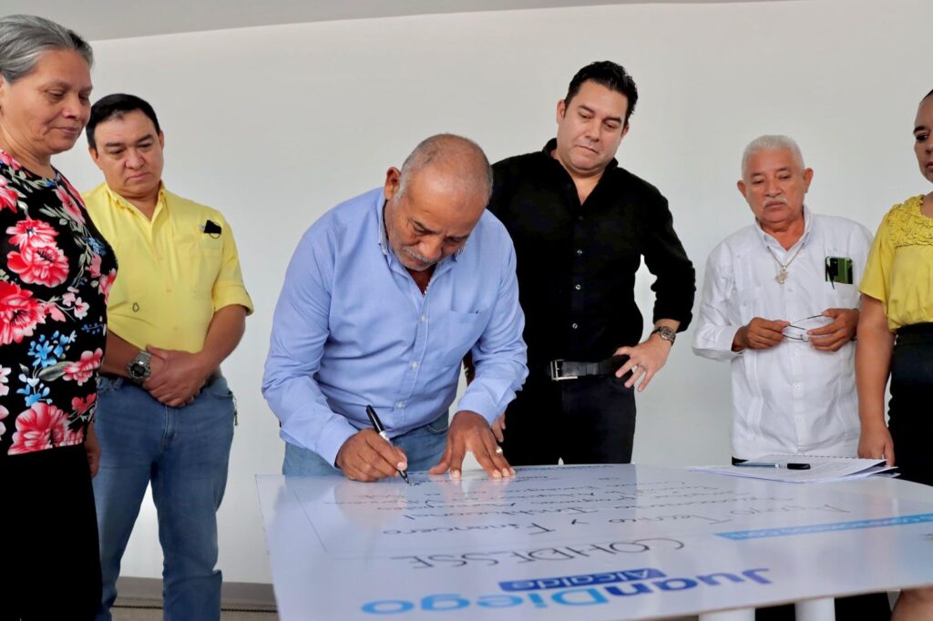 Juan Diego destacó que su gobierno municipal apoyará la autogestión como un modelo eficaz de desarrollo local, y se comprometió a respaldar al Sector Social de la Economía (SSE) mediante apoyo técnico y financiero, reconocimiento institucional desde la alcaldía, convenios estratégicos con cooperativas, asociaciones locales y otras instancias del SSE, impulso conjunto de programas municipals y el respeto a la autogestión comunitaria en experiencias exitosas como la feria de Villanueva.