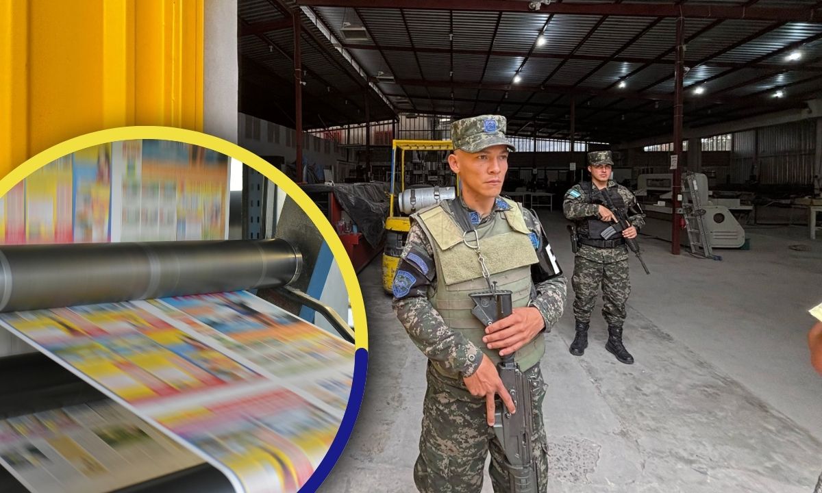 Tegucigalpa.- La Policía Militar del Orden Público resguarda las instalaciones donde se imprimen las papeletas electorales para las elecciones primarias que se celebrarán el próximo 9 de marzo de 2025.