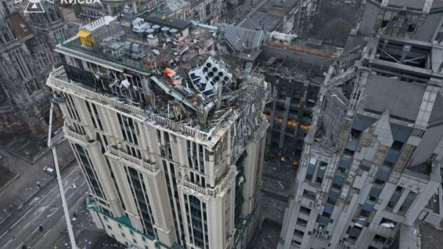 Varias embajadas ubicadas en el mismo edificio resultaron dañadas, según el Ministerio de Asuntos Exteriores de Ucrania, y un portavoz, Heorhii Tykhyi, calificó el ataque de “bárbaro”.