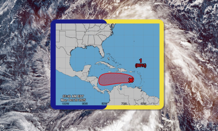 Una onda tropical ubicada a unos 500 kilómetros al oeste del arco de las Antillas Menores continúa desplazándose a una velocidad aproximada de 30 kilómetros por hora hacia el Caribe Central, mostrando señales de fortalecimiento.