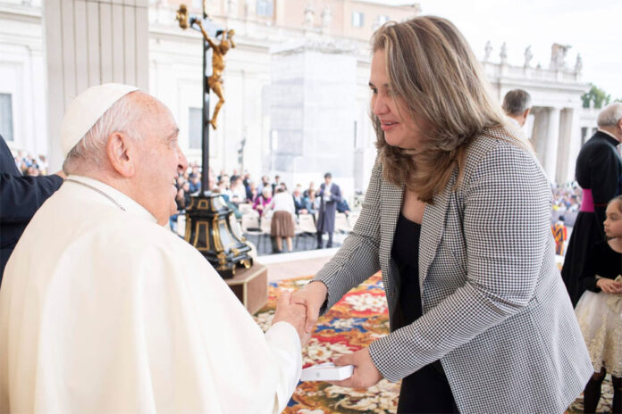 “Sigue adelante, no te detengas”, fueron parte de las expresiones del Papa a la viceministra de seguridad.